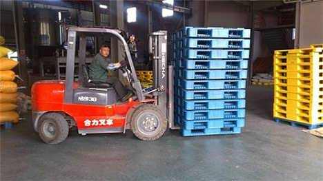 叉車是搬運(yùn)塑料托盤的常用工具,常見的有人力叉車(地牛)、電動叉車,以及搬運(yùn)大型托盤用的機(jī)械叉車。在使用叉車對塑料托盤進(jìn)行搬運(yùn)的時候應(yīng)注意以下事項(xiàng):
